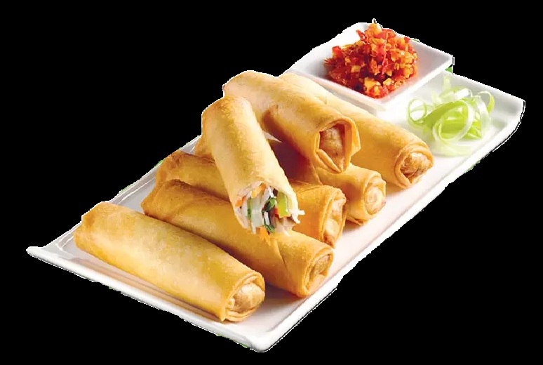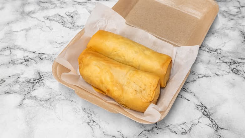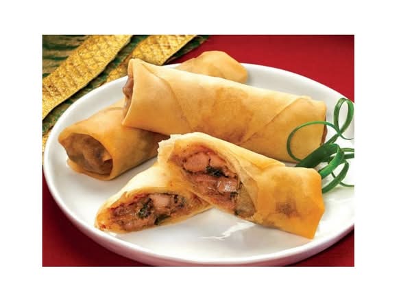 Crispy Spring Roll x2, contains pork, shrimp, beansprouts